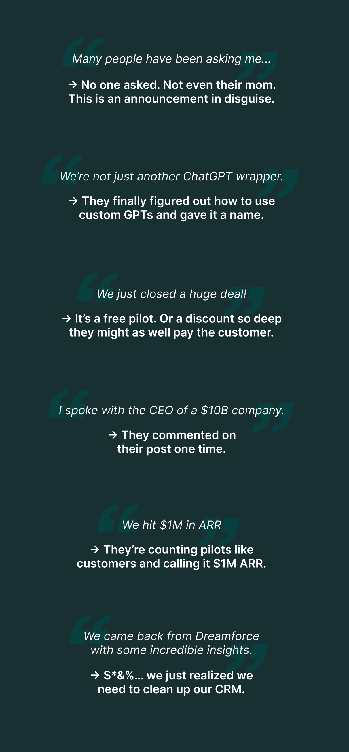 Because you’re going to scroll and start thinking: “Wait...am I the only one not scaling, hiring, crushing?”